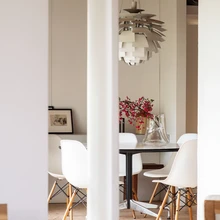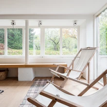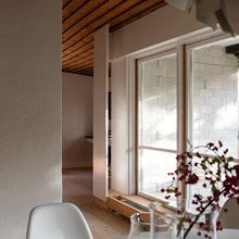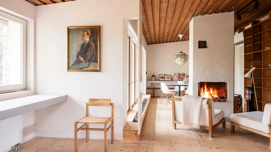 Kogu sisseehitatud mööbel, tahveldussüsteemiga seinajaotus ja kitsas köök edastab Väino Tammele iseloomulikku detailitäpset käekirja. 1960. aastate modernismi vaimus on ruum valge ja voolav: köök on eraldatud avarast elutsoonist, kus keset ruumi paigutatud kamin tsoneerib söögi- ja elutoa, mis oma voolavas sopilisuses pakub rohkelt võimalusi ja kohti istumiseks-olemiseks. Istumine, koosolemine ja aeglane kulgemine on sellesse ruumi erinevate konfiguratsioonidena sisse kirjutatud – majaga on koosolemine alati koos käinud.
