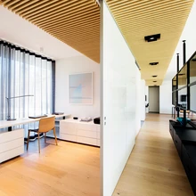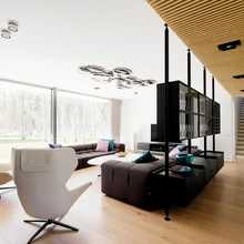 Suured klaaspinnad ja võte, et aknad ning lagi on samal tasapinnal, loovad avaraid vaateid ja annavad majale läbipaistvuse ning visuaalse kerguse. Iga vaade ja ruum on majas orgaaniliselt seotud pargi ning loodusega. Maja südames asuvas elutoas näib piir õue ja toa vahelt praktiliselt kadunud olevat ning elutoadiivanit ja sihvakaid puutüvesid eraldab vaid õhuke klaas.