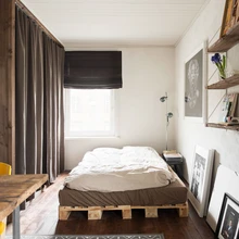 «Ehkki iga kord, kui ma hommikul silmad lahti teen ja voodist kööki vaatan, mõtlen ma: oleks ikka väga ilus, kui seda lauda siin ees ei oleks,» märgib ta. Söögilauast loobumist ta siiski tõsiselt vist ikkagi ei kaalu. Kaubaalustest voodi ehitas ta endale ise ning ühel hetkel oli Reneel mõttes see hoopis lakke rippuma panna – alustest on lihtne metalltorud läbi torgata ja jääks vaid lakke kinnitamise vaev, et eksootilise ja hõljuvana mõjuv voodi olemas oleks. Samas oleks kiusatus sinna alla paigutada mitte väga esteetiliste kodumasinate-pesurestide-triikimislaudade kollektsioon ilmselt nii suur ja inetu, et targem on voodit hoida maas.
