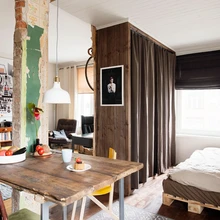 Elutuba, köök, kodukontor, magamistuba – see kõik on tema üks ja ainus tuba ning tuleb ikkagi leida kardinad, mis mõjuvad ühtviisi hästi magamistoas ja kodukontoris, ning mööbel, mis köögilaua taga istudes ei lubaks tekkida tundel, et meetri kaugusel olev elutuba võib siiski tegelikult asuda teisel planeedil.