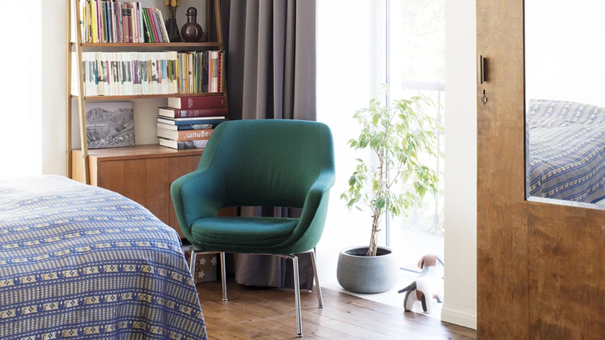 Vinüülplaatide hoidmiseks ideaalselt sobiv lahendus leiti Ikeast. Nutikalt eri mudelitest kokku konstrueeritud riiulid toimivad ühtlasi ka helitehnika aluste / DJ-lauana. Aktsentidena elavdavad tervikut väärtuslikud vanamööbliesemed, näiteks magamistoas peegliga riidekapp, mis on perekonnareliikvia vanatädilt, ja 1970ndatest pärit raamaturiiul, mis leiti väikelinna taaskasutuspoest. Tugitoolidena on kasutust leidnud tumerohelised Martela söögitoolid.