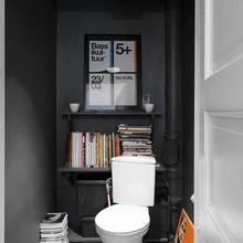 Kui korteri ja vannitoa värvimisel kasutati professionaalide abi, siis köök ja tualettruum renoveeriti oma jõududega. Vana köögimööbel jäeti alles, ent värviti üle – tasapinnad mustaks, riiulid ja sahtlid valgeks. Köök on küll askeetlikult lihtne, kuid kokandushuviline pererahvas kasutab seda iga päev väga aktiivselt ja see on oma väikeste mõõtmete kohta üllatavalt funktsionaalne.