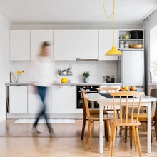Samuti oli kollane köögilambi kuppel see, mille eelmised elanikud pärandusena korterisse jätsid ning mis Markole väga meeldis ja mis tänapäevasemate detailidega ümber tuunituna nüüd nagu päike neile igast nurgast vastu särab.