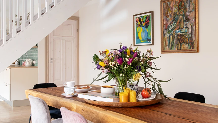 Olles kogenud peadpööritavat tempot maailma metropolis ja sealses moetööstuses, oskab Anna hinnata rahuliku piirkonna võlu ning õdusa puumaja hubasust. «Vanas majas oli karakterit, ajaloo ilu. Korteri atmosfäär köitis mind kohe,» meenutab naine, kuidas valik Tallinnas eluaset otsides üsna kiirelt selle paiga kasuks langes. Avar aknaga vannituba, võimalus magamistoast väikesele terrassile astuda ja huvitav kahe tasandiga planeering olid meeldivaks boonuseks. 80 ruutmeetri suurune korralikult renoveeritud korter tuli nüüd üksnes sisustada ja seeläbi veelgi omasemaks ning kodusemaks tuunida.
