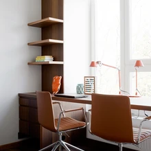 Kogu korteri sisustus – sisseehitatud kapid, garderoobid, vannitoa- ja köögimööbel, seinapaneelid jms – on valminud sisearhitekti jooniste järgi eritellimusena. «Erimööbli projekteerimine on väga töömahukas, iga pisemgi detail ja lahendus tuleb välja mõelda ning lahti joonistada. Kõik see võtab aega. Sisearhitektina armastan oma töid n-ö näpu vahel ja rätsepatööna teha ning on väga tore, kui kliendid sellega kaasa tulevad,» räägib Mari.