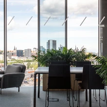 Kõige kõrgemal korrusel kroonivad väärtusperspektiivi kuvavalt tippjuhid. Siin on inimestel omaette kabinetid, parimad vaated, kõige rohkem ruutmeetreid ja privaatsust ning vahest seeläbi ka mõttelendu. Kabinetid ja ka alumiste korruste enamik töökohti paiknevad välisperimeetris ning maast laeni ulatuvate klaaspindade tõttu võib siin mõnust vaid nurruda. Kogu Tallinn on otsekui peo peal – näeb vanalinna ja meie newyorklikku city’t, merd ja Lasnamäed, kaubanduskeskusi ja kunagisi tööstushiide. Niinimetatud miljonivaadetega turustatakse paljusid ettevõtmisi, kuid siin on arenduse ilmselge kulukus olnud tõepoolest hinda väärt.