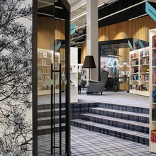 «Meie jaoks oli suur väljakutse, kuidas luua kohalikele muljet, et me pole endisesse poodi ehitustarvete riiulite asemele pannud lihtsalt raamaturiiuleid. Kuna ruumil on ka tohutu kõrgus, tegime mitmeid liigendavaid elemente ja tasapindu,» avab sisearhitekt Määrmann probleemide ringi. «Muidu võiks see tunduda kõrge ja kõle ruum, aga tulemus on hubane ja inimesed leiavad riiulite vahel endale sopid ja kohad, kus mõnusalt istuda.»