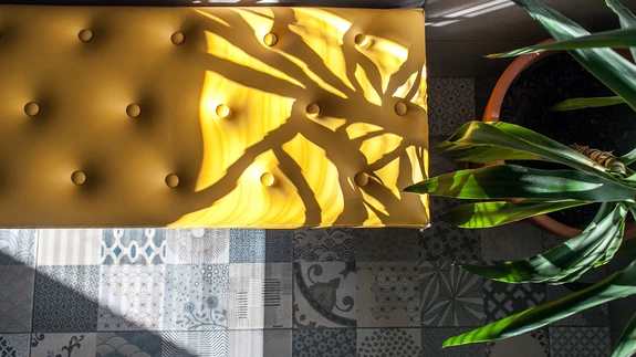 Köögi hall toon kordub pisut erinevas varjundis elutoa seinal ja muutub magamistoas sumedaks sinakasroheliseks paletiks. Nüansirikas seinatoon muudab pisikese magamistoa põnevaks ja külluslikuks, ka messingutooni aksessuaarid sobivad tervikusse suurepäraselt. «Messing on interjöörimoes praegu väga armastatud,» märgib aastaid Londonis elanud kujundaja. «Samuti soojad samblarohelised ja sügavsinised värvitoonid.»