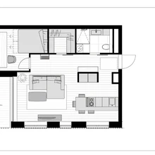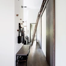 Sama põhimõtet on järginud ka sisearhitekt Aet Piel kolmanda korruse väikest (45 m2), aga kõrgete lagedega korterit kujundades. Detaile, värve ja erinevaid viimistlusmaterjale on korteris minimaalselt ning esikohal on nutikad ja praktilised kujundusnipid.