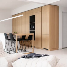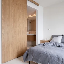 Korteri mahagonist siseuksed asendati valgete siledate ustega. Köögi- ja garderoobilahenduses ning magamis- ja vannitoa sisustuses on kasutatud heledat tammepuitu, mis toonitab hubasust ja soojust. «Minimalistliku materjalikäsitluse ülesanne on tõsta esile valgust, õhulisust ja mõistagi merevaadet,» kommenteerib sisearhitekt.