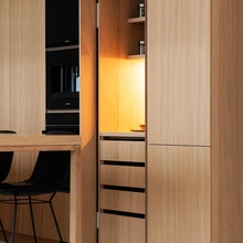 Õdususse panustab ka elutoa biokamin, mille jaoks näpistati ruumi esikukappide arvelt. «Kuna üks tuba sai tehtud n-ö walk-in-garderoobiks, võis kappidele väiksema sügavuse jätta,» täpsustab Piel, kuidas mõni lihtne nipp võib anda ruumile palju juurde.