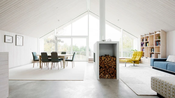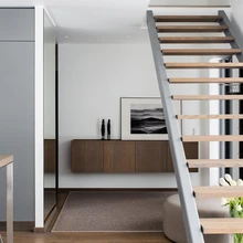 Renoveerimise fookuseks sai läbi kahe korruse avatud elutuba ja köök, mille pindala ei ole ruutmeetritelt ülemäära suur. Küll aga muudavad lagede kõrgus, avatud planeering ja maast laeni aknad ruumi suursuguseks ja õhuliseks, nõudes ka mööblilt suuri ja julgeid vorme. Ruumide planeeringut väga ei muudetud, maha võeti vaid esiku ja köögi vaheline sein, mille arvelt pikendati köögifronti ja muudeti kogu ruumi avaramaks.