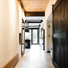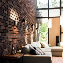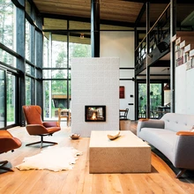 Peale sümpaatse tellise on maja siseviimistluses rakendatud väärikaid looduslikke materjale: ehedat puitu, tammelaud-parketti, lubikrohvi, tadelakti, looduskivi ja keraamilisi plaate. Muuseas, sauna kerist köetakse puudega. «Interjööride üldmulje on põhjamaine, aga igasse ruumi on maitsekalt miksitud erinevas stiilis asju, mis kõik on kantud perekonna energiast,» kommenteerib sisearhitekt, kellele on kõige südamelähedasem ruum elutuba ja sellest avanevad võrratud vaated tagaaeda, kus suvel käivad lapsed mändide alt mustikaid noppimas. «Hurmav eklektika ja Marge heas mõttes hullumeelsed ideed olid juba algusest peale siselahendustesse kodeeritud − minu ülesanne oligi need plaanid toredaks tervikuks siduda, et siin oleks pisut nostalgiat ja romantikat, samuti soojust ja funktsionaalsust,» teeb ta kokkuvõtte.