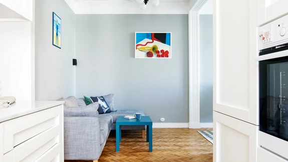 Südalinna väikese sisehooviga majas on nappidele ruutmeetritele nutikalt ära mahutatud elutuba, köök, magamistuba, kabinet ja vannituba. Kõrgete lagede, mahedate toonide ning sisseehitatud kappidega k...